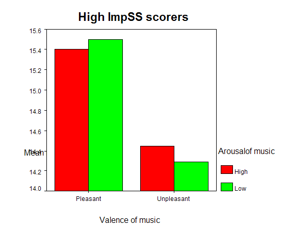 scorers during high-arousal music. The result suggests that high ImpSS scorers